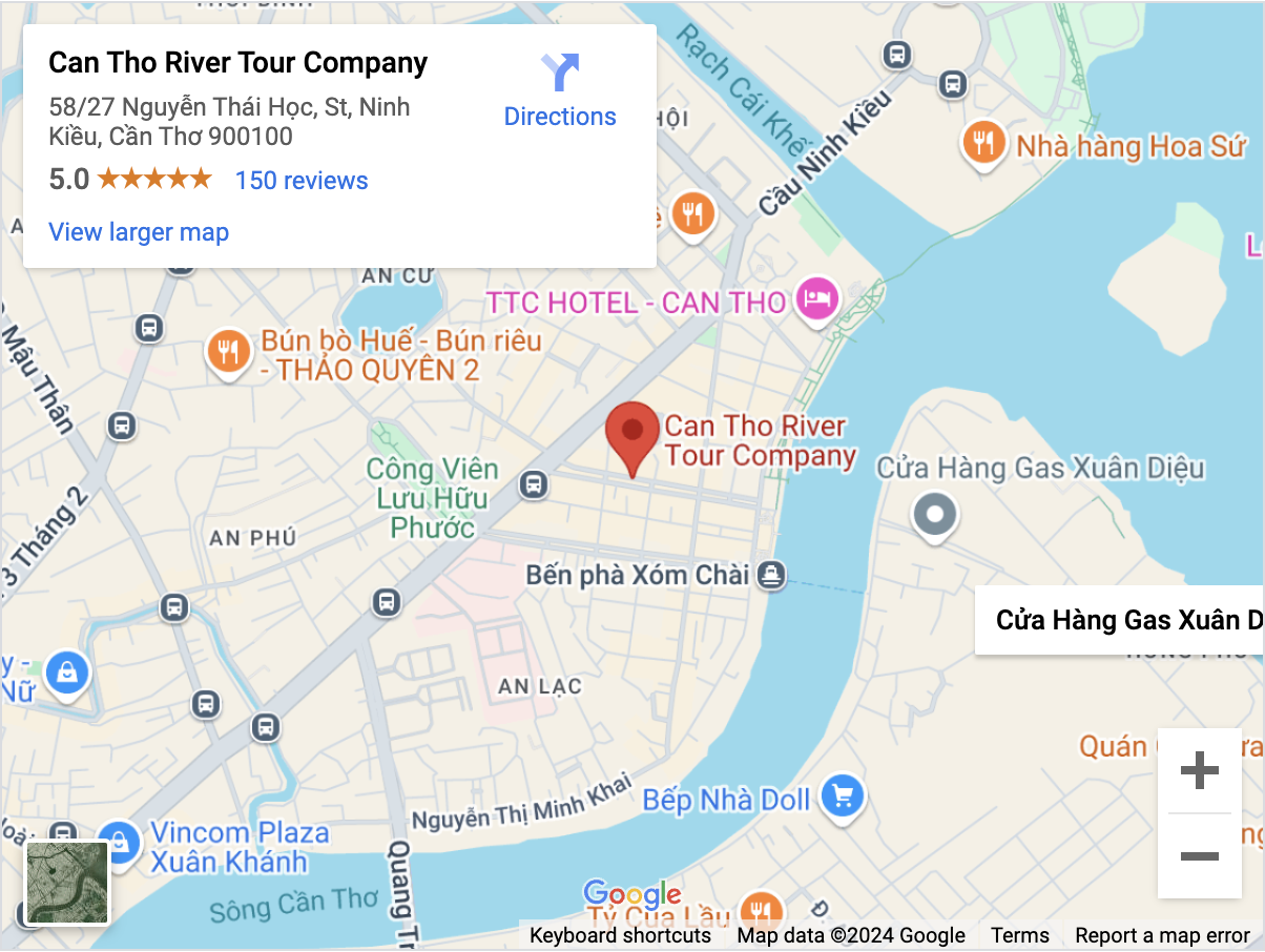 Can Tho River Tour is a well-regarded travel and tour company (Int. Tour Operating License: 91-005/Issued by: Ministry of Tourism Vietnam), set up by a group of passionate Can Tho locals. The company specializes in hand-crafted, intimate group and private guided tours with unique activities: Can Tho floating market & wildlife, small canals & sunset, fruit gardens & rice paddies, cacao farm & wetland nature reserve, noodle factory and off the beaten track by bicycle, Can Tho city tour by boat, exclusive walking street food tour, private transfer to surroundings areas and Ho Chi Minh City and licensed local expert tour guides to match all your travel preferences and wishlists.